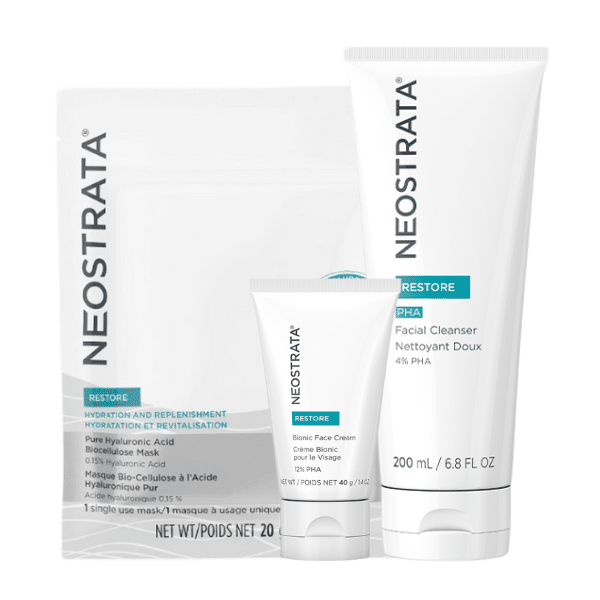 Detta hudvårdspaket från Neostrata är utvecklat för att lugna och återfukta även den mest känsliga huden. Med en kombination av milda syror, fuktgivande ingredienser och hudbarriärstärkande ämnen hjälper rutinen till att:
